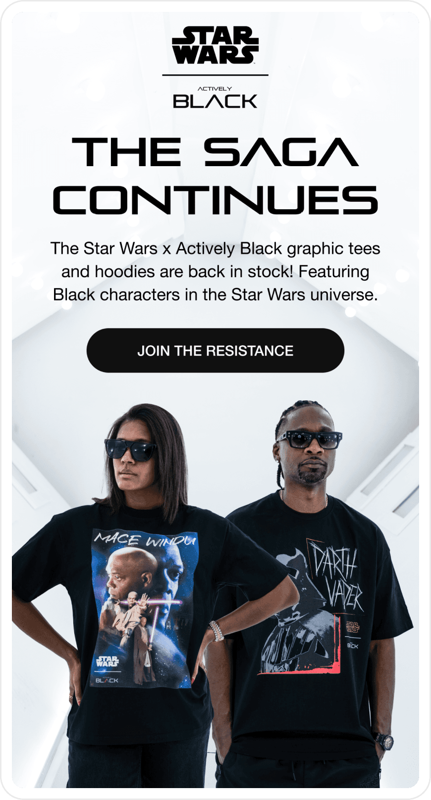 Actively Black celebrates the most prolific Black icons in history through their premium apparel, partnering with Marvel, Disney, and more. In the first 90 days of launch, we activated over 3,000 new Loyalty customer accounts.